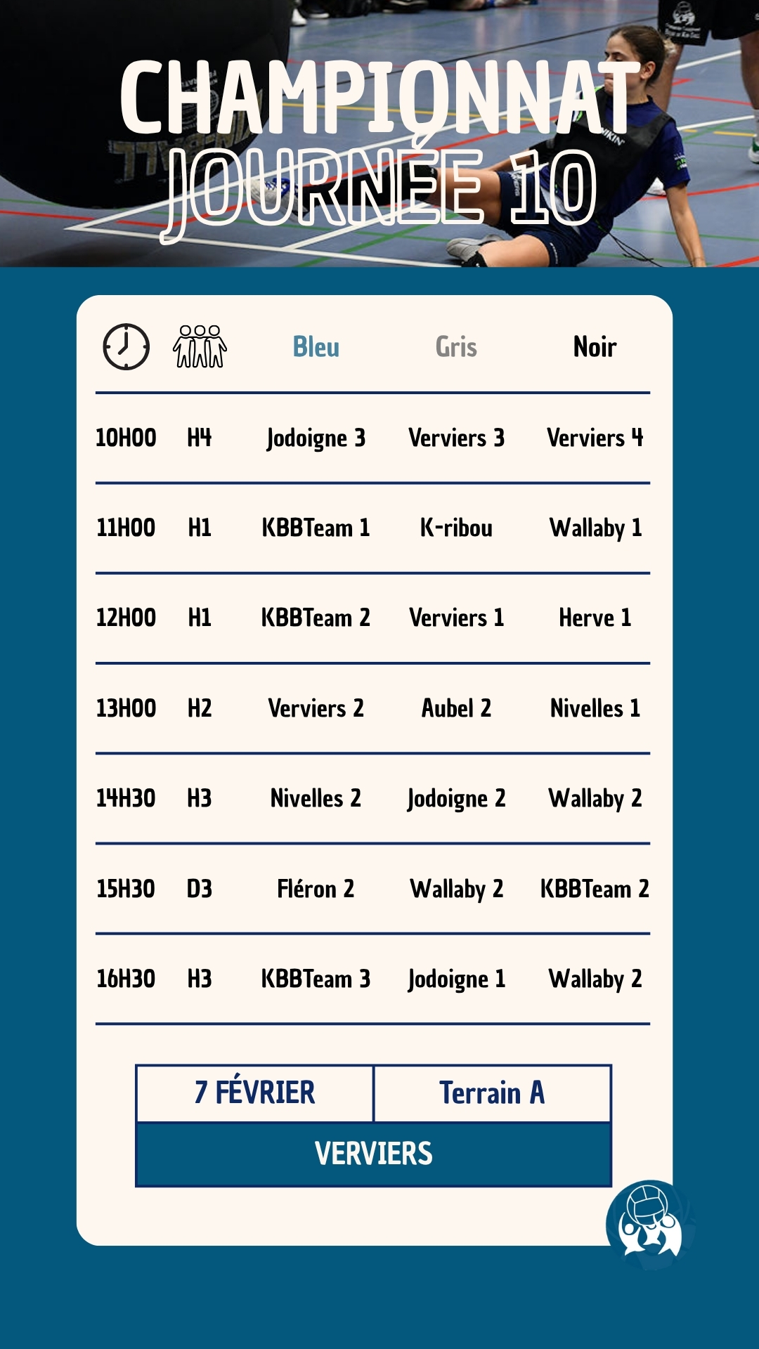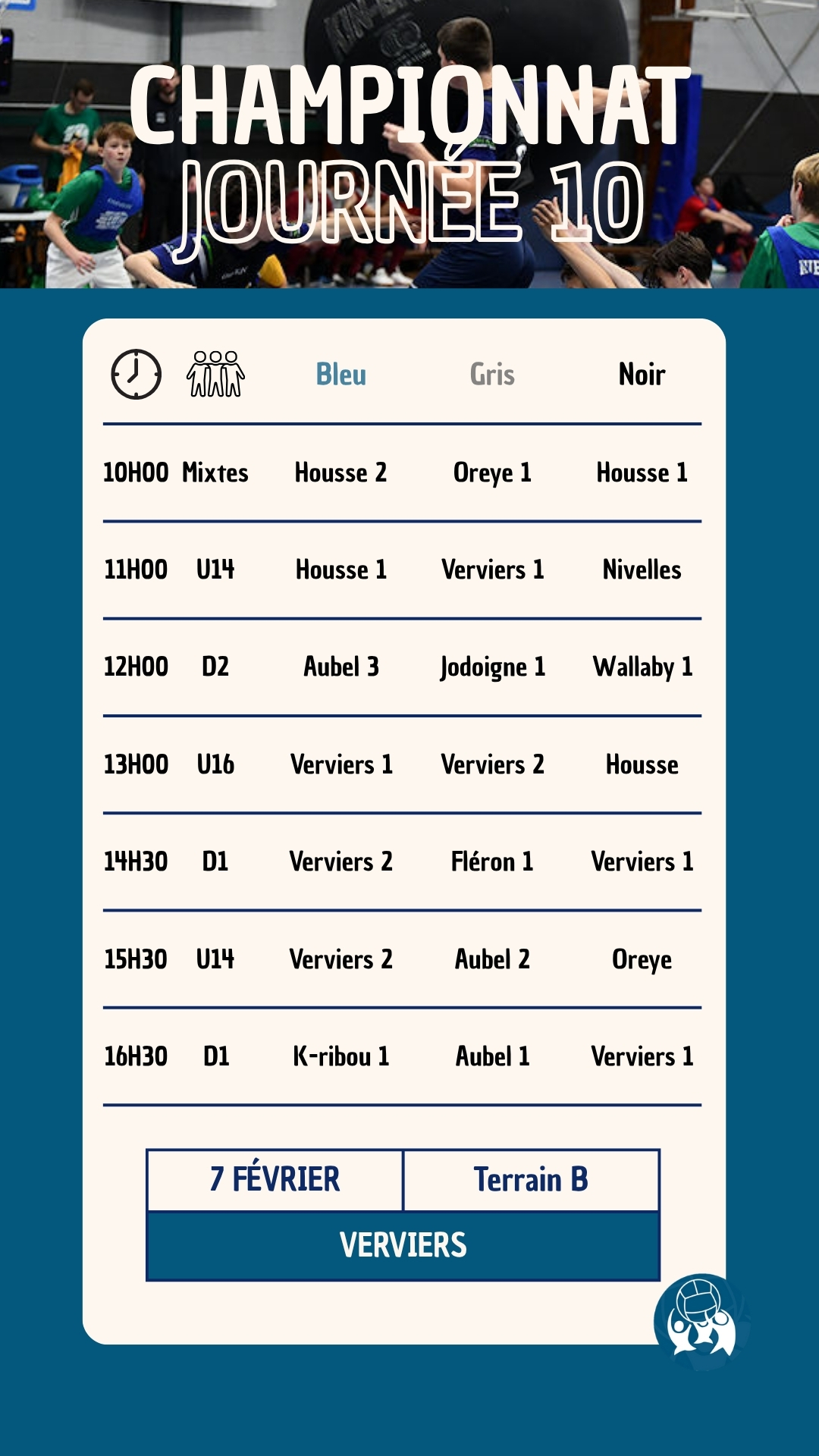 La dixième journée du championnat national de la saison 2025-2026 aura lieu le 7 février 2026 à Verviers (Rue Thil Lorain, 4800 Verviers). Le club de Verviers vous accueillera pour une nouvelle journée 100% Kin-Ball.